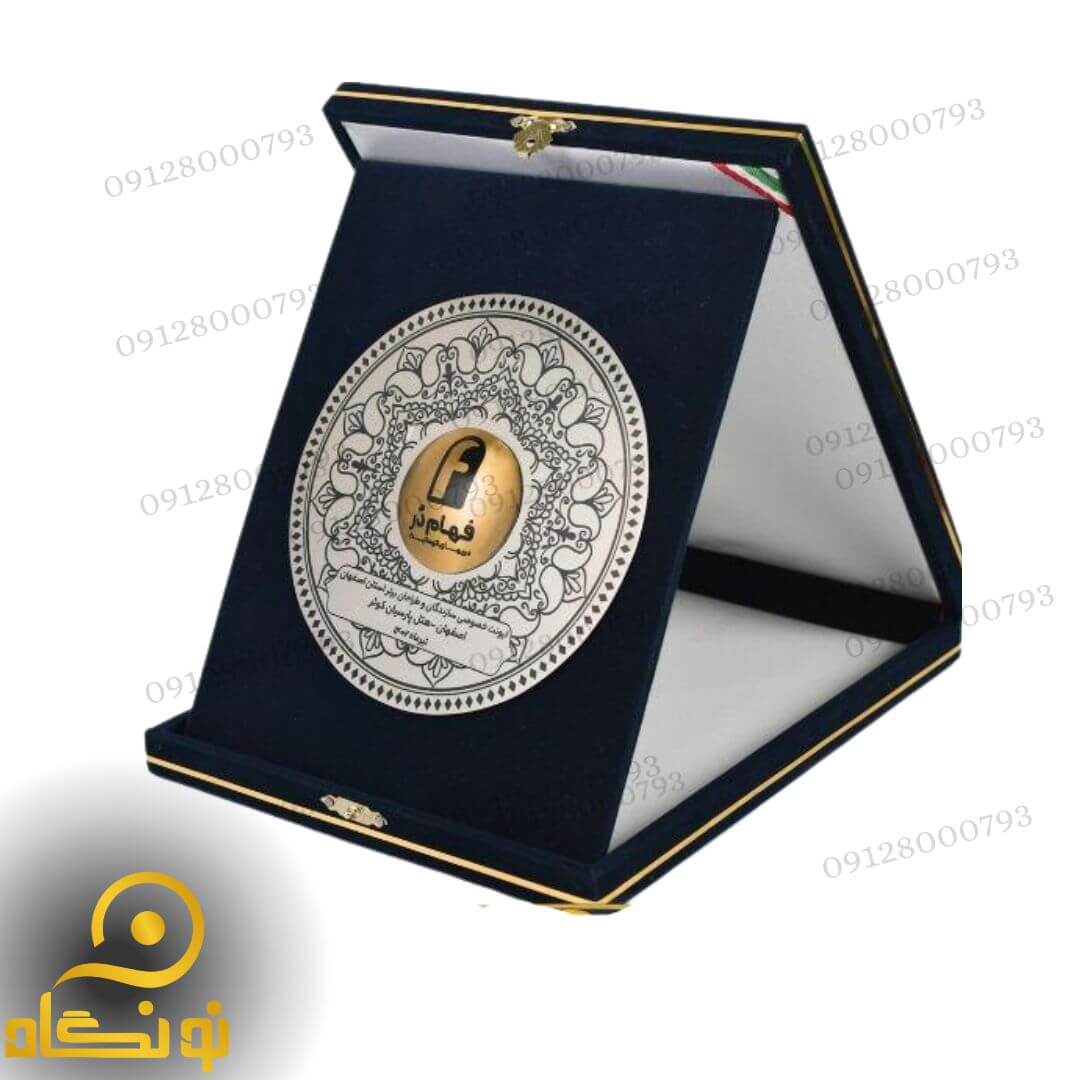 لوح تقدیر جیر به همراه پلاک استیل یکی دیگر از نمونههای نو نگاه است که با دقت و ظرافت خاصی طراحی و ساخته شده است. این لوح تقدیر مخملی اختصاصی به سفارش شرکت فهام تهیه شده و از مواد با کیفیت بالا و طراحی منحصر به فرد برخوردار است.